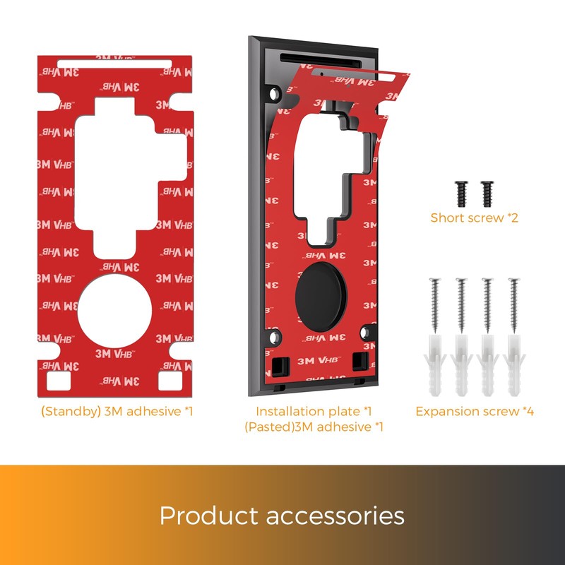 - What You Get: 1x 3M strong adhesive, 1x screw accessories, 1x Ring doorbell mount. If you are not completely satisfied with the Ring doorbell mount for apartment doors, please do not hesitate to contact us via the "Contact Seller" section on Amazon