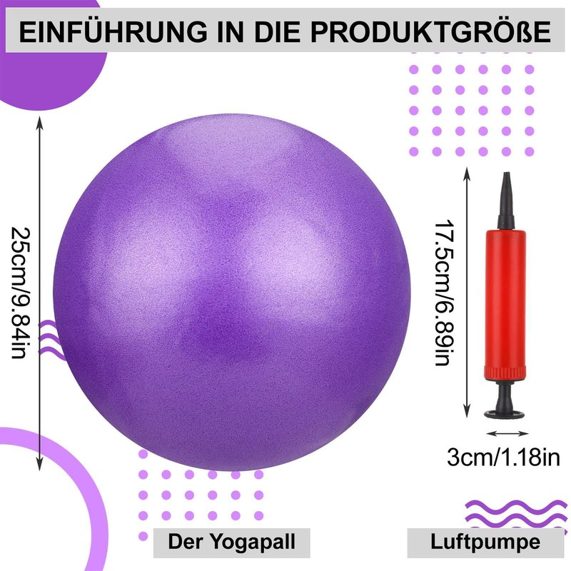 - Multifunctional: The 25 cm yoga ball is one of the best tools for practicing yoga. The mini yoga ball can be used on the back, stomach and legs to build muscles and improve balance. It also improves blood circulation and burns fat for the perfect body shape, everyone can use the exercise ball.