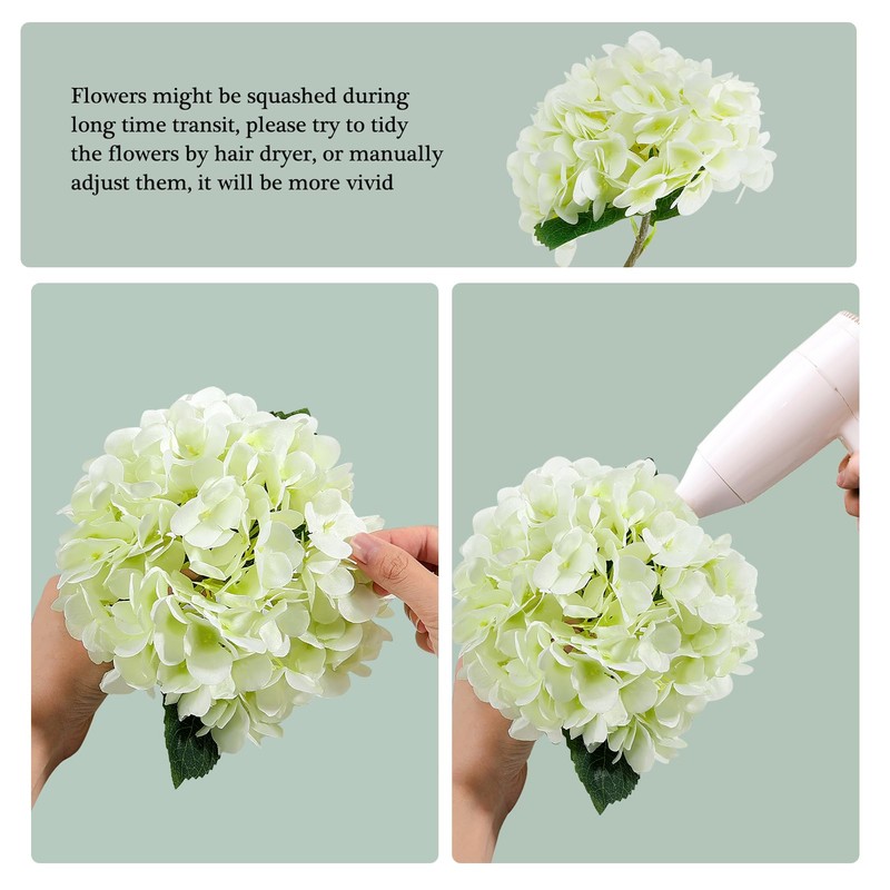 • Easy Maintenance: Unlike natural flowers, these artificial hydrangea stems do not require watering or special care. They retain their beauty over time, providing a convenient solution for enduring floral arrangements