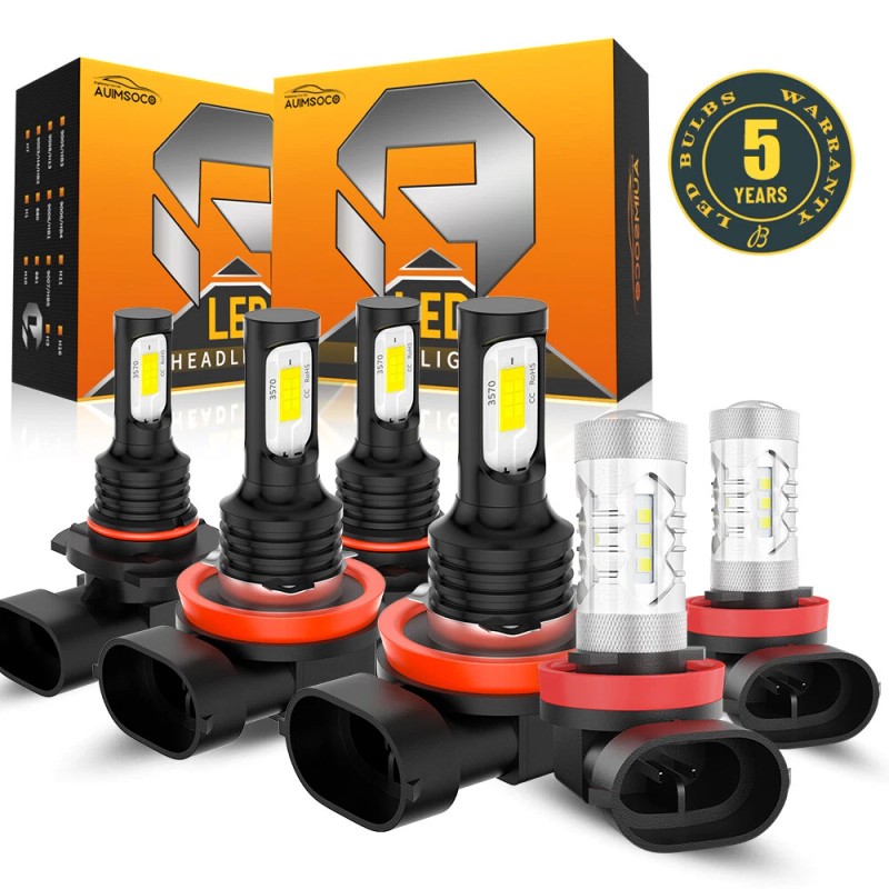 AUIMSOCO COB LED Car Lamp Hi-Lo Beam Fog Light Bulbs 6000K Kit for Chevy Sonic 2012-2016