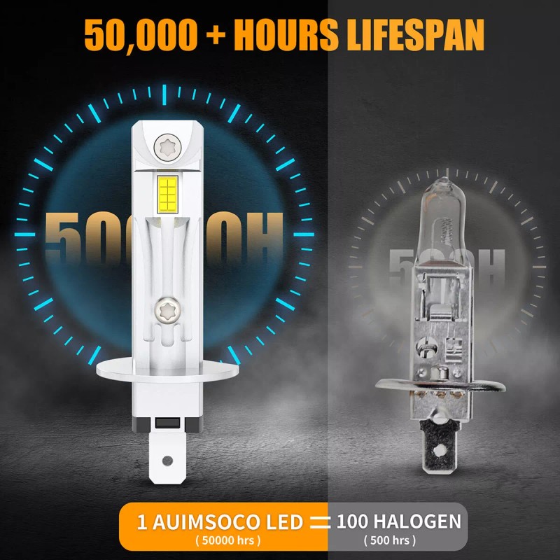【Better Driving Experience】The 9005 H1 LED bulbs increase 300% brightness and 100% view, focus beam pattern illuminates reveal road signs, without blinding other drivers