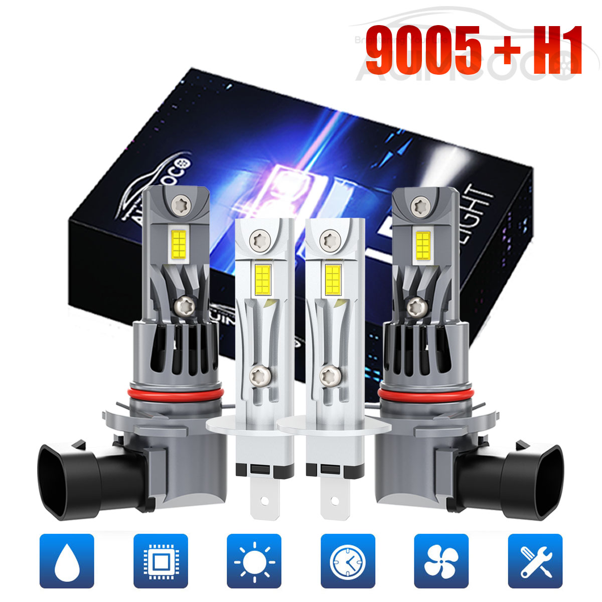 AUIMSOCO For Nissan 240SX 1997-1998 4pc 9005+H1 Headlight Combo High Low Beam LED Bulbs