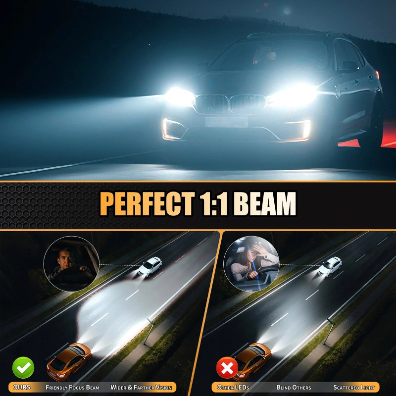 Optimized Beam Pattern: This Bulbs has 1:1 halogen filament design, apply the same length and position as the halogen bulb. It focuses light to match the standard beam pattern and does not blind oncoming traffic, no dark spots or foggy light.