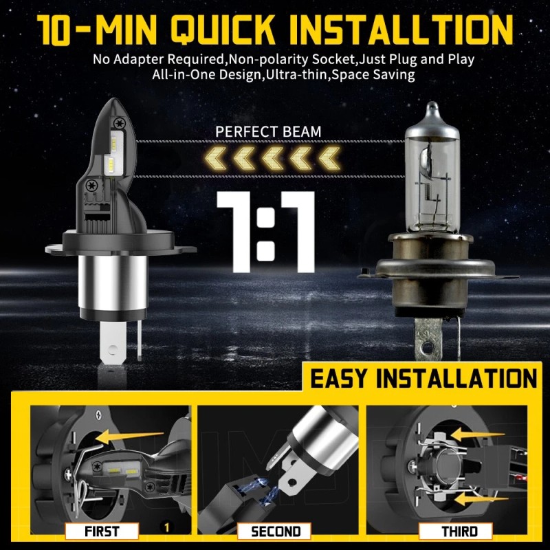 10-Minute Installation – True plug-and-play; mini-size body fits tight housings. No external ballast/driver required.