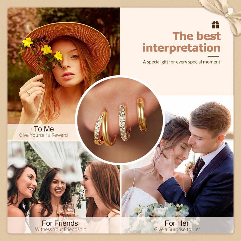 - Hypoallergenic and waterproof: Our elegant gold earrings are set with cubic zirconia and made from hypoallergenic brass with 14K gold plating. Professional polishing and plating processes ensure durability and skin-friendliness. They are ideal for daily wear or special occasions
