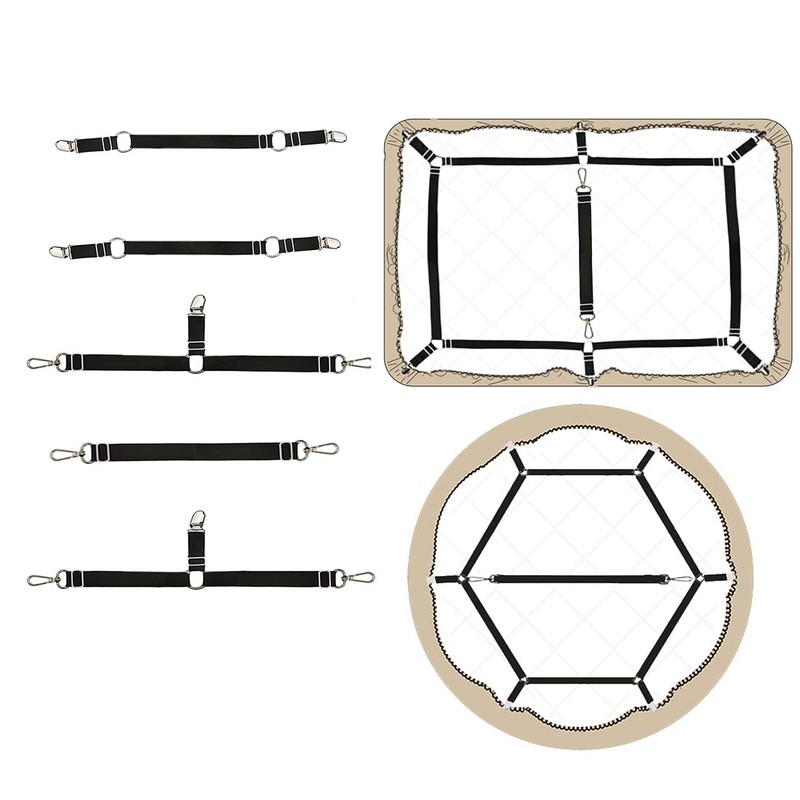 Auivguiv Bettlaken-Klammern, verstellbare Spannbetttuch-Hosenträger, passend für Einzel-, King-Size- und Queen-Matratzen (schwarz)