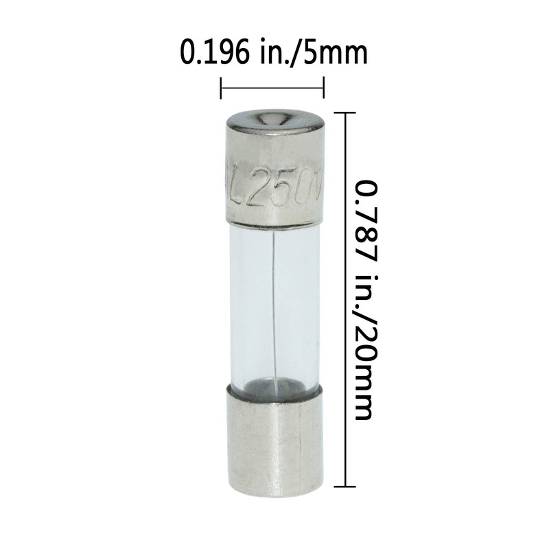 - Material: glass&metal. Glass Fuse Dimension: 5x20mm/0.2x0.78Inch. Fuse Voltage: 250V.