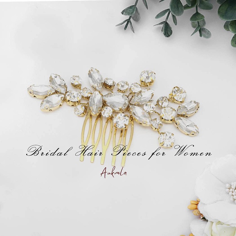 - Handmade hair side comb approx size: free size, Gold bride hair piece in unique design and excellent workmanship, made of crystal & alloy.