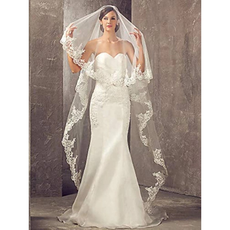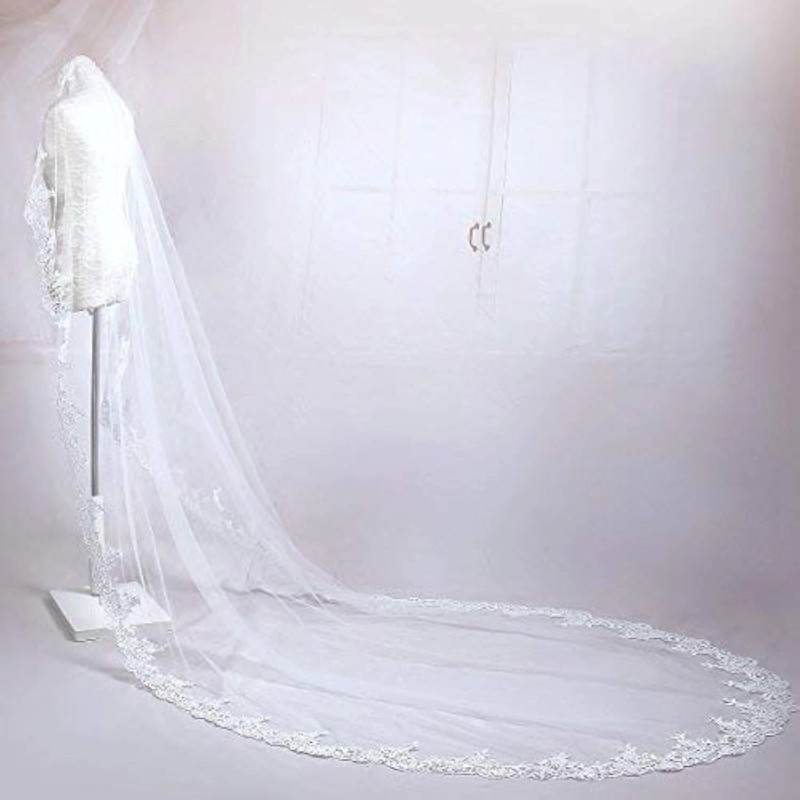 Aukmla Wedding Bridal Veils Long Veil with Lace and Metal Comb At The Cathedral Length