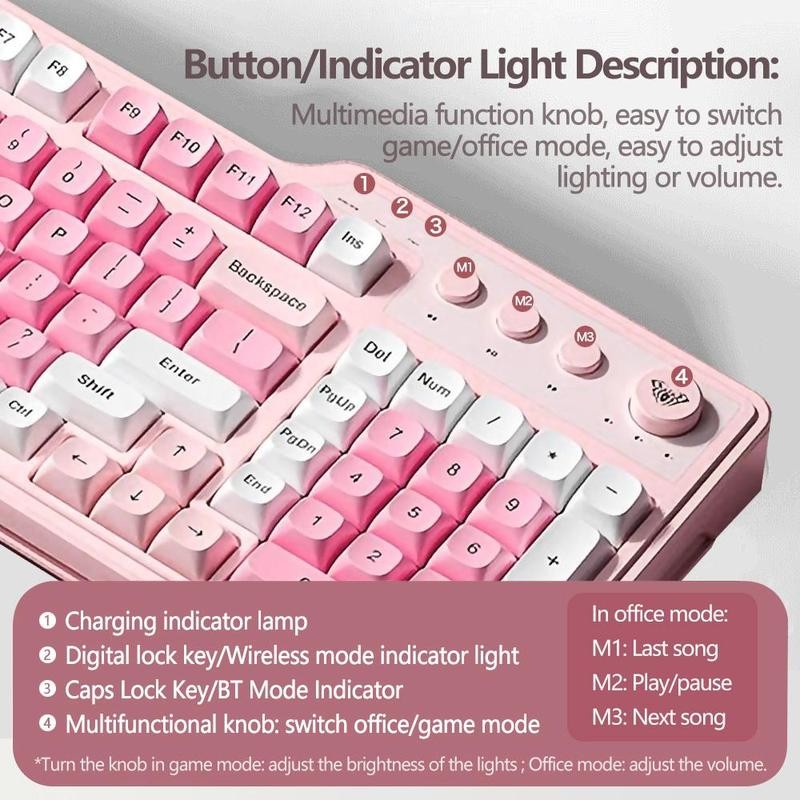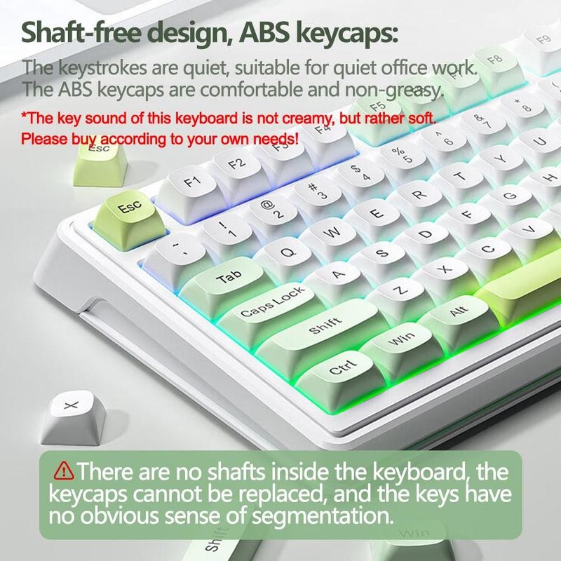 AULA F3099 Wireless Keyboard, 99-key Layout Wireless Keyboard, Fashionable Color Matching Keyboard, Ergonomic Design Keyboard for Office & Gaming, Durable Keyboard, USB Rechargeable Keyboard:_light green + white + grass green_Official standard
