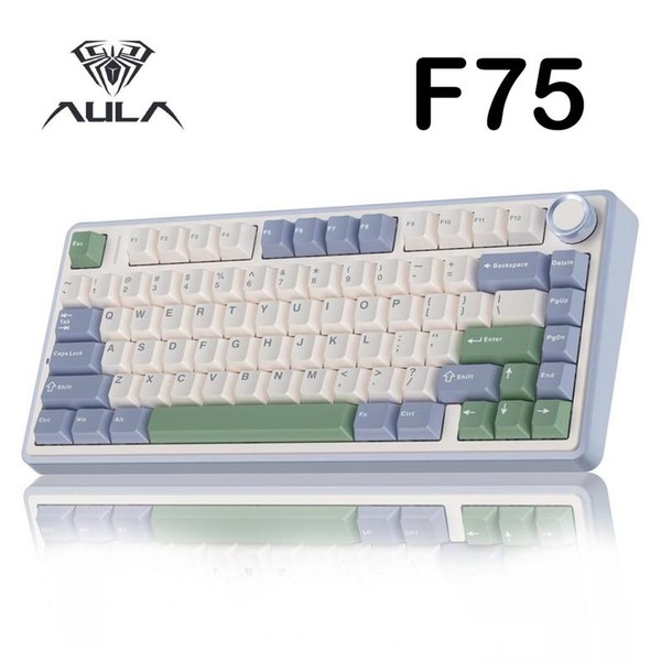 Aula F75 MAX Wireless Mechanical Keyboard 75% Layout Hot Swappable RGB Backlit Gasket Design TFT Screen Knob for PC Mac Linux - Colour: F75 cedar green