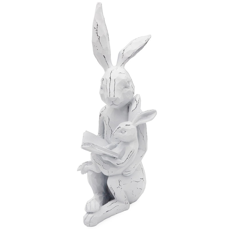 Welcome springtime by decorating your home with this charming resin sculpture of a mother bunny reading to her baby. The white distressed exterior adds an antique-like touch that is a refreshing, more sophisticated change from typical colorful Easter decorations. Not only can it be used as Easter or spring time decor, but this loving scene is perfect for your own baby’s nursery or your child’s bedroom. This reading themed figurine would also be lovely placed on a bookshelf of your own or in a library. If you prefer to use it as a decorative outdoor statue, it can easily be placed on your porch or in your garden.