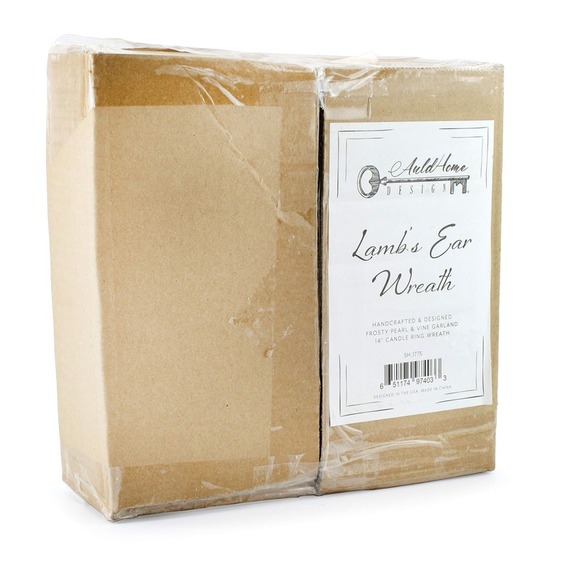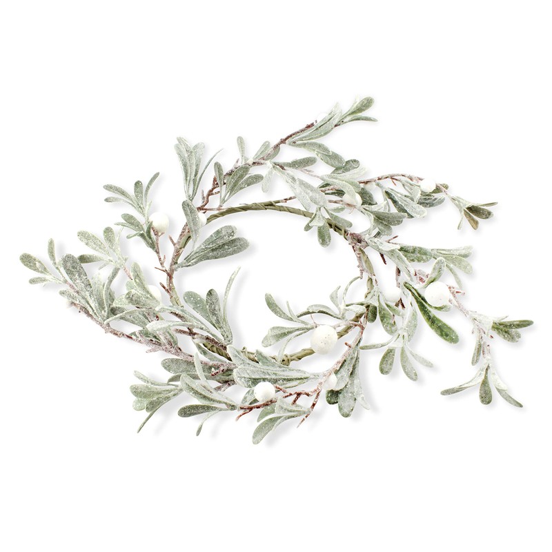 AuldHome Lamb’s Ear Candle Ring (14-Inch Diameter); Frosted Pearl and Berry Farmhouse Christmas Decor Small Wreath or Candle Accent
