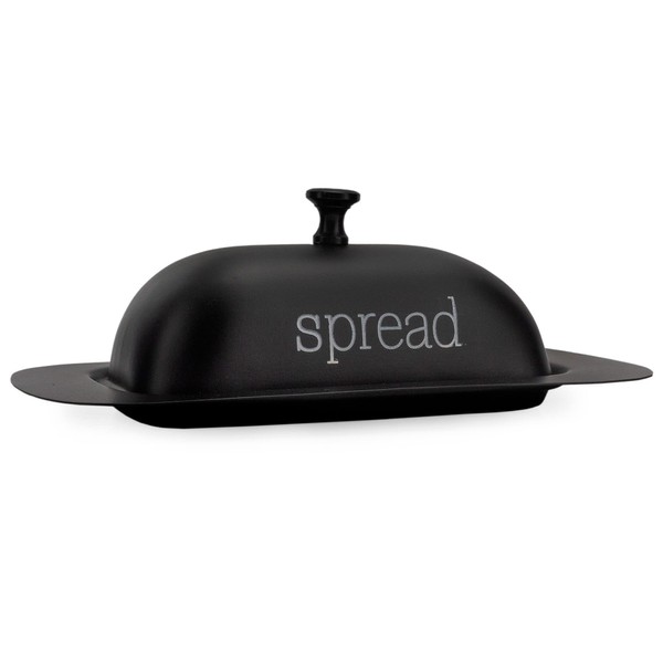AuldHome Design Large Enamelware Butter Dish (Black); Modern Farmhouse Enamel Butter Serving Dish w/ Lid
