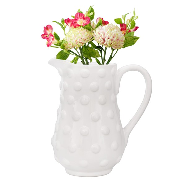 AuldHome White Hobnail Ceramic Pitcher (Small), Vintage Retro Style