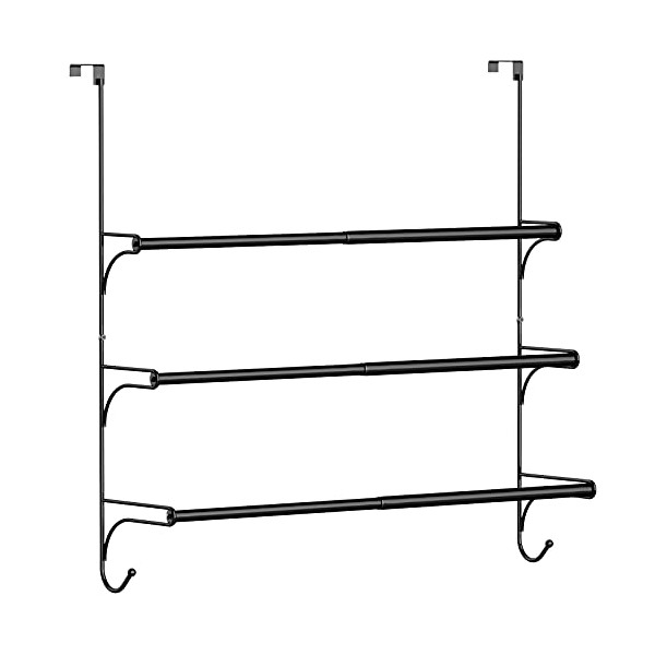 Auledio Adjustable Over The Door Triple Towel Rack with Hooks,Black