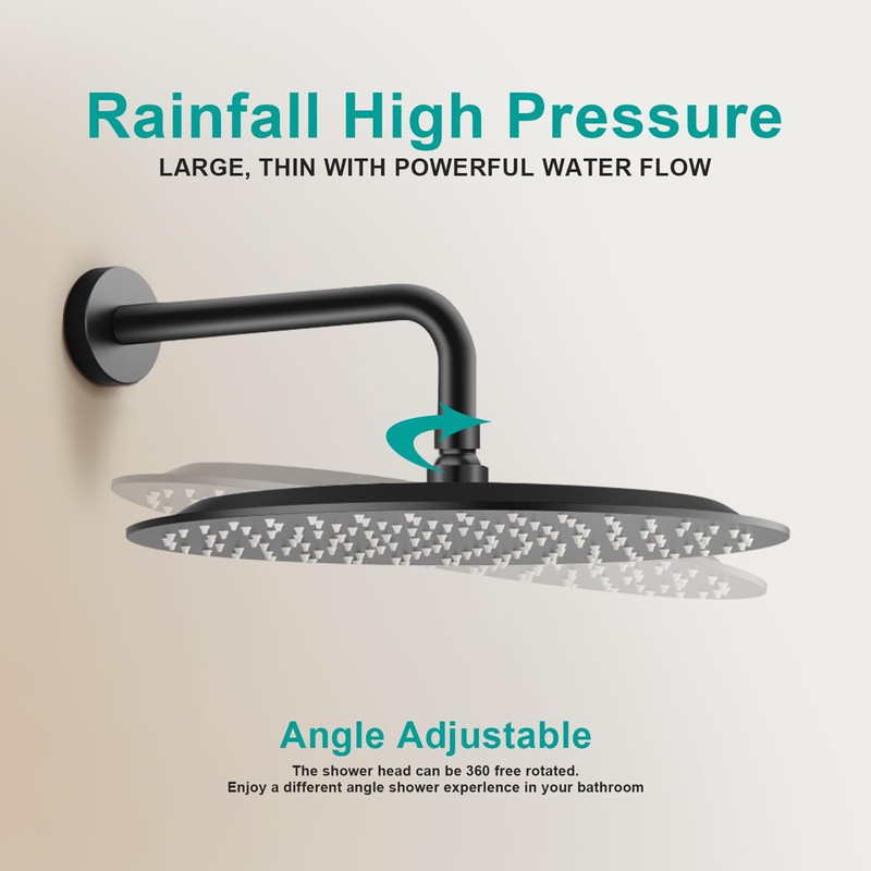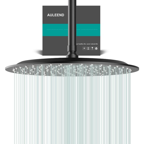 AULEEND Rain Shower Head, Work with any decorative style,All Metal Rainfall Shower Head (D-Matte Black, 12)