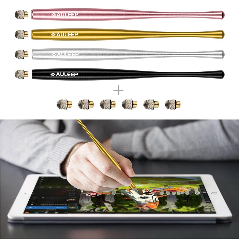 AULEEP Capacitive Stylus Pens for Touch Screen with 4 Pack 6 Nanofiber Tips Compatible for Phones, Tablets, iPads, Kindles (Silver Gray/Black/Rose Pink/Light Gold)