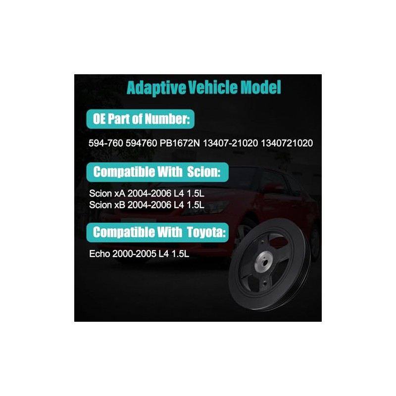 - FitmentCompatible with Scion xA 2004-2006 L4 1.5L, Scion xB 2004-2006 L4 1.5L; Compatible with Toyota Echo 2000-2005 L4 1.5L