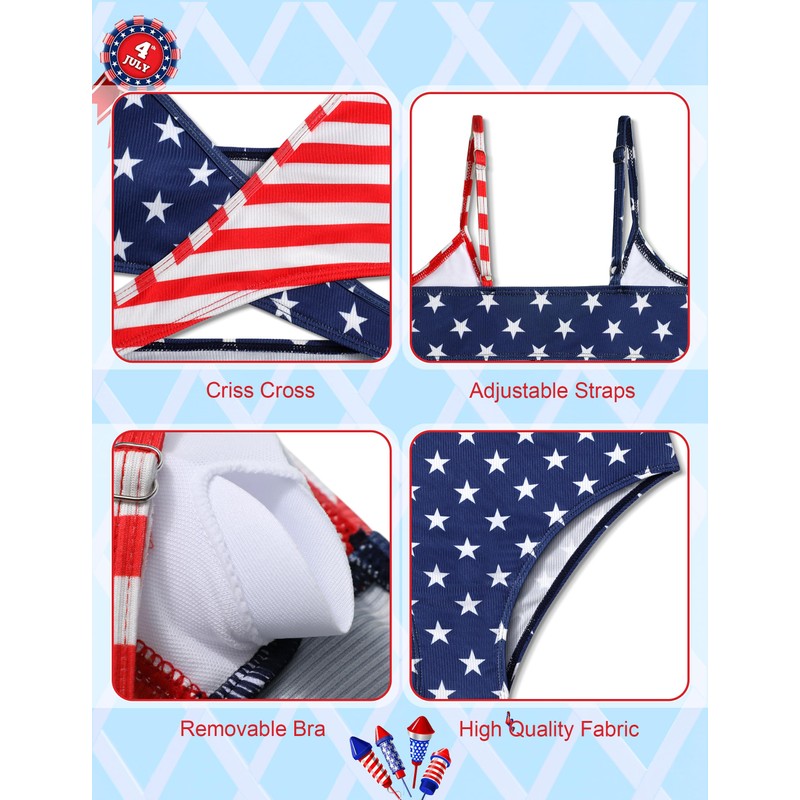 Aulyffo - Conjunto de bikini para niñas, traje de baño de dos piezas, traje de baño cruzado para niñas, USA flag 2, 15-16 años