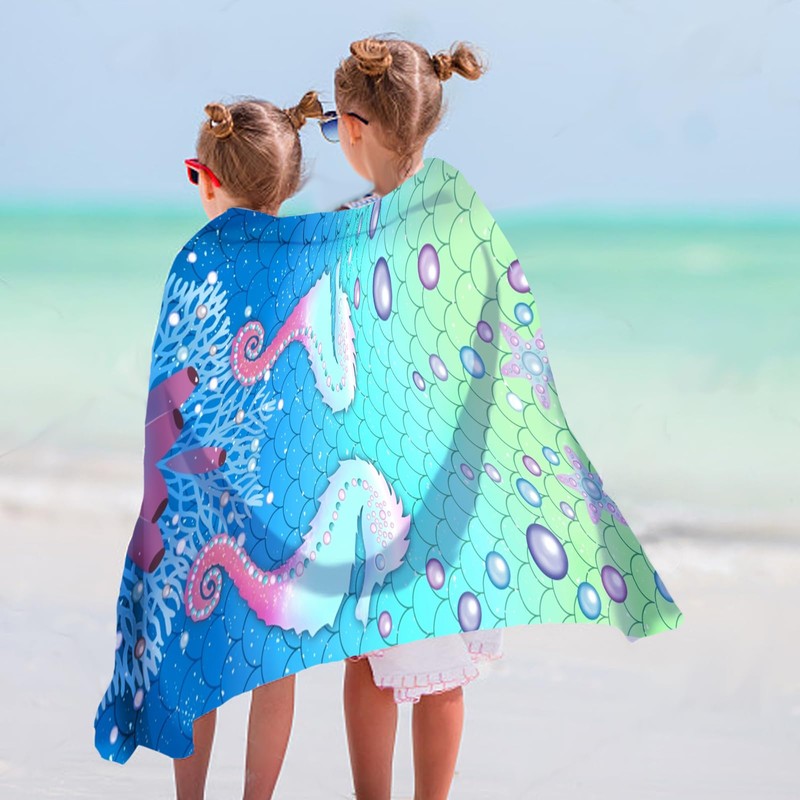 1. The soft and skin-friendly seahorse beach towel for children is made of microfibre,