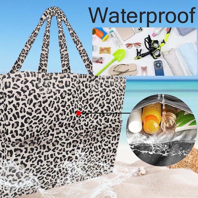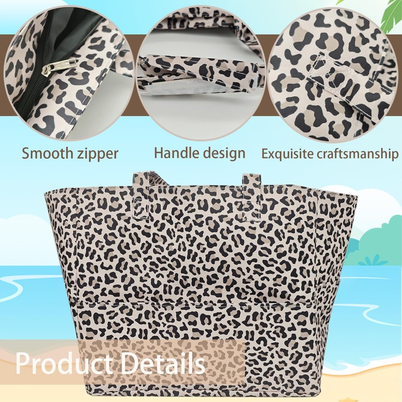 AUNGKWANG Women's Large Beach Bag, Large Waterproof Swimming Bag with Zip, Beach Bag for Beach, Holiday, Pool, Travel, Shopping and Everyday Use, leopard