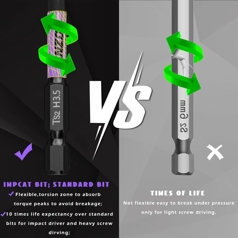 • The hex bit set are made of S2 alloy steel, used CNC precision technology, and heat treatment process that gives them a hardness of hrc60. The high torsion and proper hardness avoid the bits break and wear.Phosphate black surface to prevent rust.