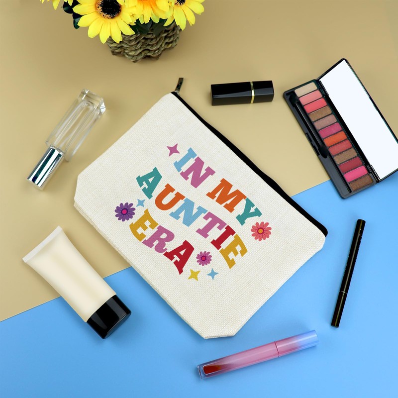 - Aunt Themed Makeup Bag:Our cosmetic bag have Double-sided printed, high quality coating, Lightweight cosmetic bag size - 10 x 7 inches/ 25 x 17cm;This make up bag is big enough to hold your day-to-day makeup, like lipstick, lip gloss, makeup brushes, eyeshadow and so on. Keeps all your stuff nice ,easily fits into your woman’s handbag, or carry.