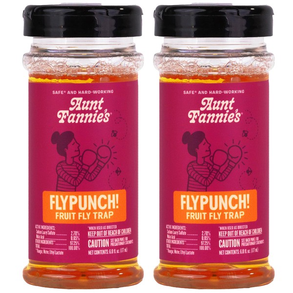 Aunt Fannie's FlyPunch Fruit Fly Trap for Indoor and Kitchen Use, Ready to Use, Made with Plant Based Ingredients, Safe Near Food, Each Bottle Lasts Up to 30 Days, Pack of 2