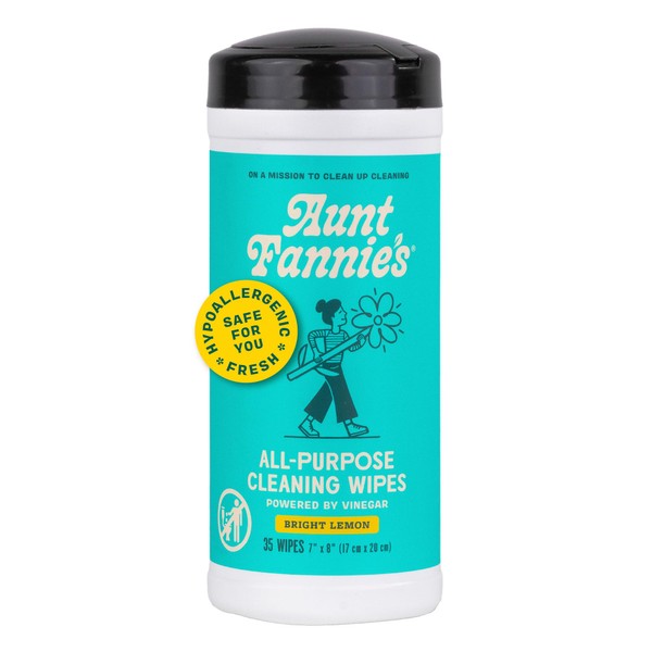 Aunt Fannie's Natural Cleaning Vinegar Wipes, Multipurpose Surface Cleaner, Bright Lemon Scent, 35 Count (Pack of 1)
