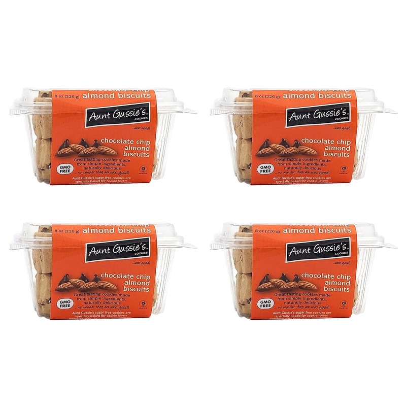 - CHOCOLATE CHIP ALMOND BISCUITS: Made with sugar free chocolate chips and protein rich almonds, Aunt Gussie's Sugar Free Chocolate Chip Almond Biscuits are made with wholesome ingredients and are delightfully crisp