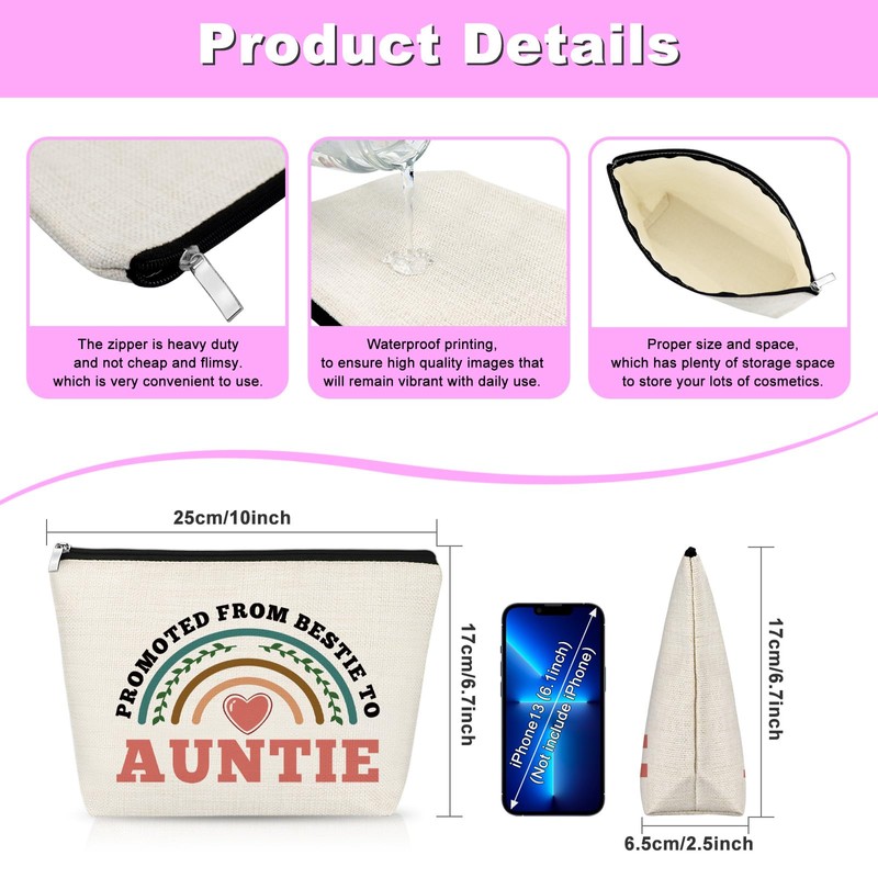 - Pregnancy Announcements Gift for Aunt:What a better way to surprise your aunts that she is going to be a Auntie by presenting her with this cosmetic bag! Gift for new aunt,sister,friend ,expecting aunt,Birthday party and special day.This must melt any aunt's heart!