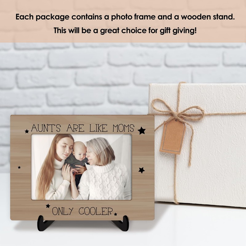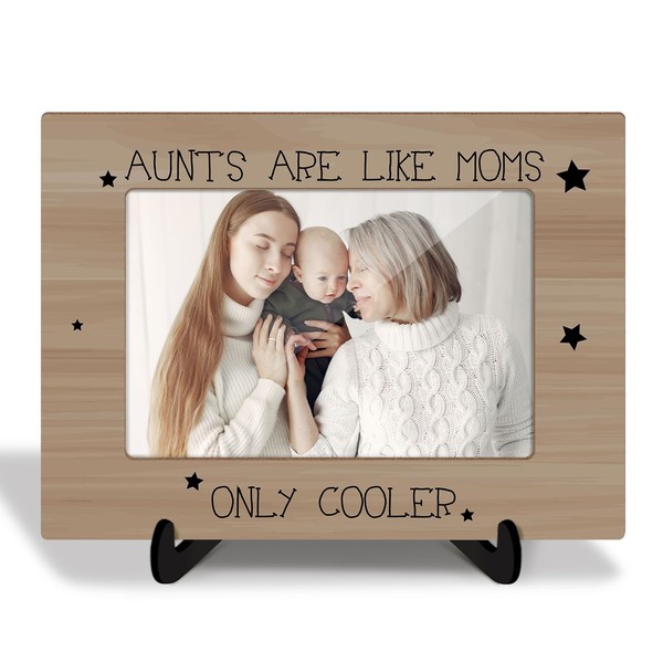 Aunt Wooden Picture Frame with Stand Mother's Day Gift for Women Auntie Aunt from Niece Nephew, Aunts are like Moms Only Cooler Shelf Home Desk Decor Photo Frame Tabletop Display 4x6" Horizontal -09