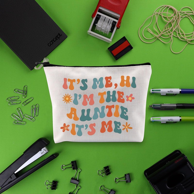Auntie Cosmetic Makeup Bag It's Me Hi I'm The Auntie It's Me Makeup Bag Auntie Gifts Cool Aunt Gifts Promoted to Aunt Gifts (HI, Auntie Bag CA)