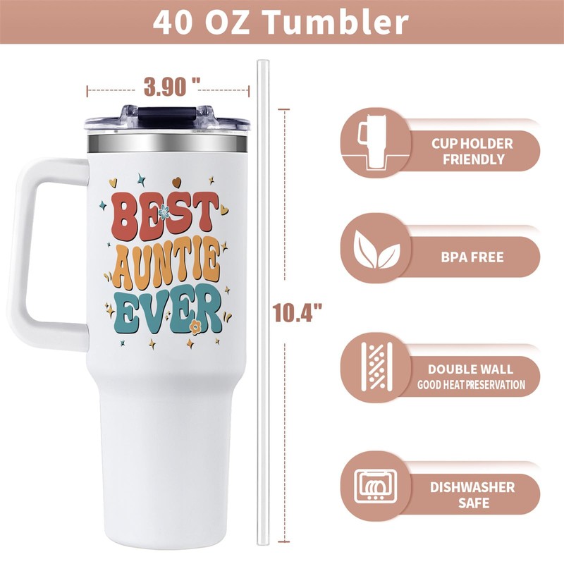 - Perfect Gifts for Aunties: This stylish best anutie ever 40oz tumbler with handle makes an ideal gift for aunt from niece, offering a practical and thoughtful present that they can use daily, whether for Mother's Day, birthdays, Christmas or just to show appreciation.