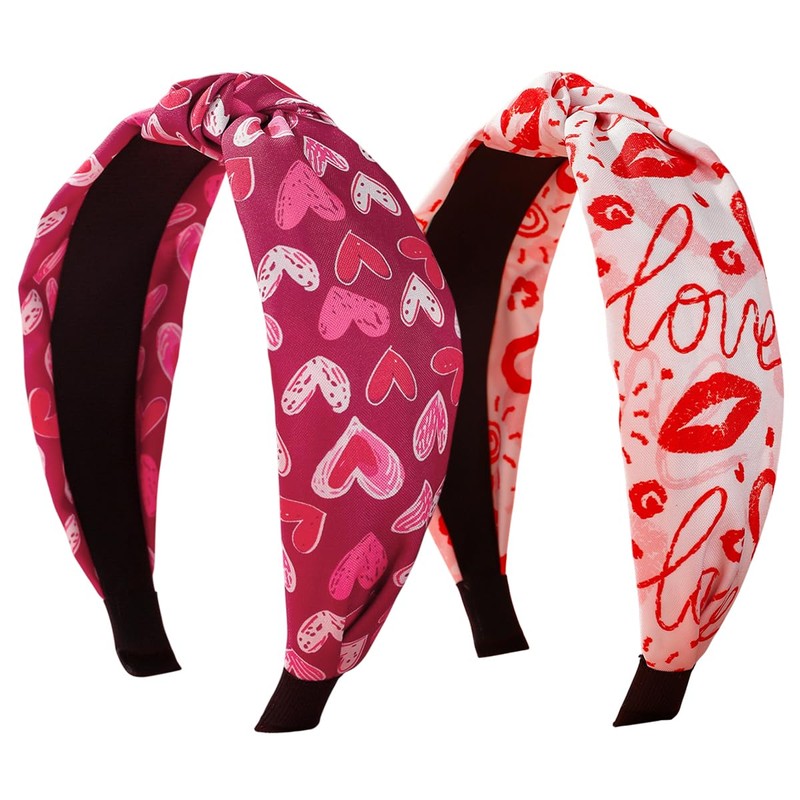 AUOCATTAIL 2 Pcs Heart Lip Knotted Headbands Valentine's Day Love Heart Lips Wide Hair Band Accessories for Women Valentines Mother's Day Costume Headwear (Red, Small)