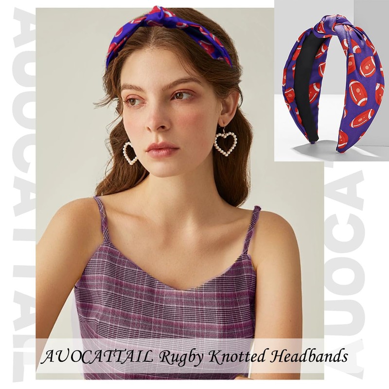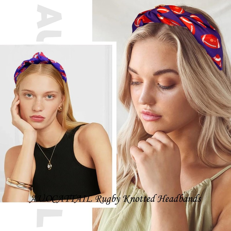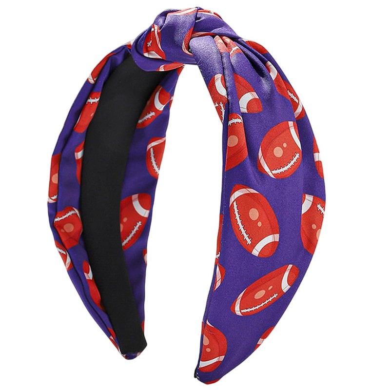 AUOCATTAIL Rugby Knotted Headbands for Women Football Wide Top Knot Headband Sport Hairband Game Day Hair Accessories for Sport Team Spirit Accessory Party Fan Gifts (Purple, Small)