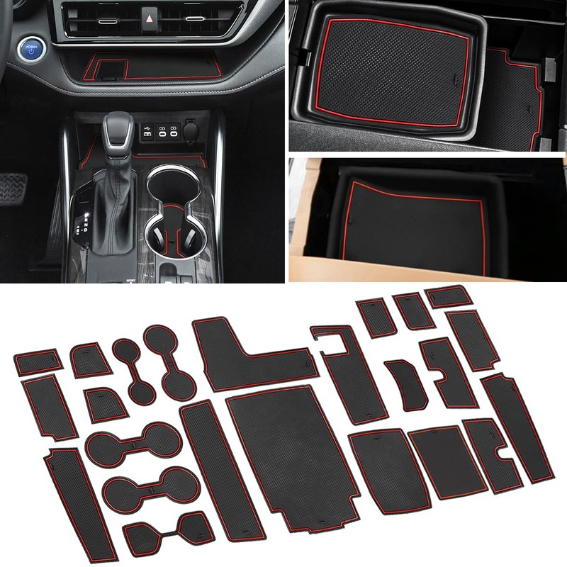 Auovo Anti Dust Mats for Toyota Highlander 2024 2023 2022 2021 2020 Accessories Custom Cup Holder Insert Door Pocket Mats Center Console Interior Liners 24pc-Set (Red)