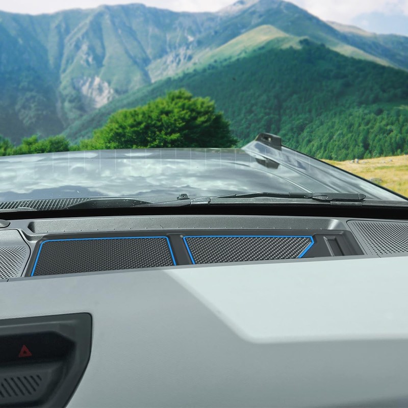 Auovo Dash Cover Tray Compatible with Ford Bronco Accessories 2021 2022 2023 2024 Anti-Slip Silicone Car Dashboard Compartments Mat fit Bronco 2/4-Door Interior Dash Pad Liners 2-pc Set (Blue Trim)