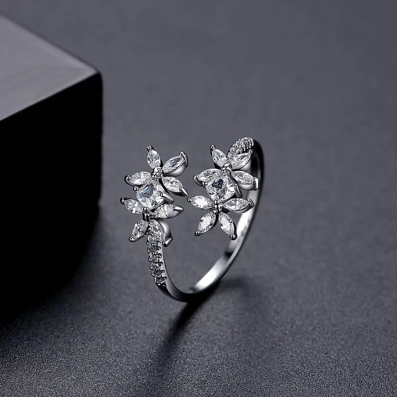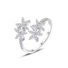 Auoy Dhof Adjustable Cubic Zirconia Ring for Women, Stackable Leaf Flower Design, Open Style (silver)