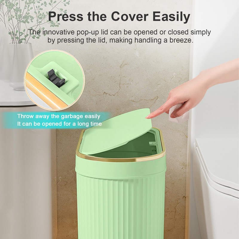 - Trash Can with Lid: The press-top cover design can keep your home clean and tidy. Just press the key, and the lid will automatically pop up, easy to operate.