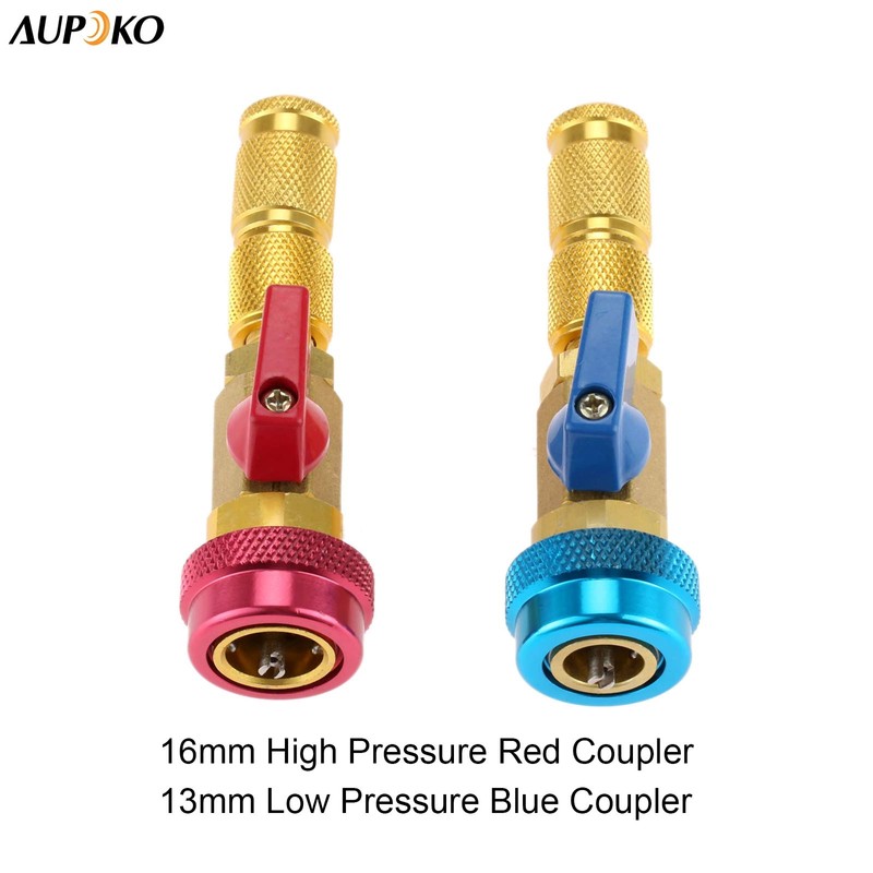 Aupoko R134A R12 Valve Core Quick Remover Installer Kit, Adjustable High Pressure (Red) and Low Pressure (Blue) Valve Core Removing and Recharging Tool for Air Conditioner, Pack of 2