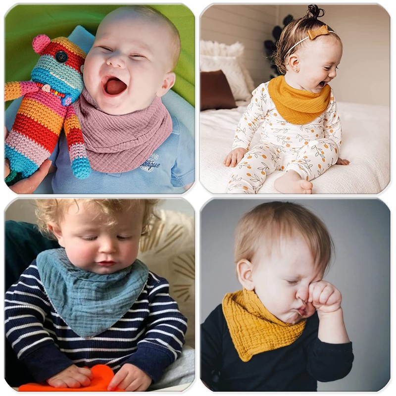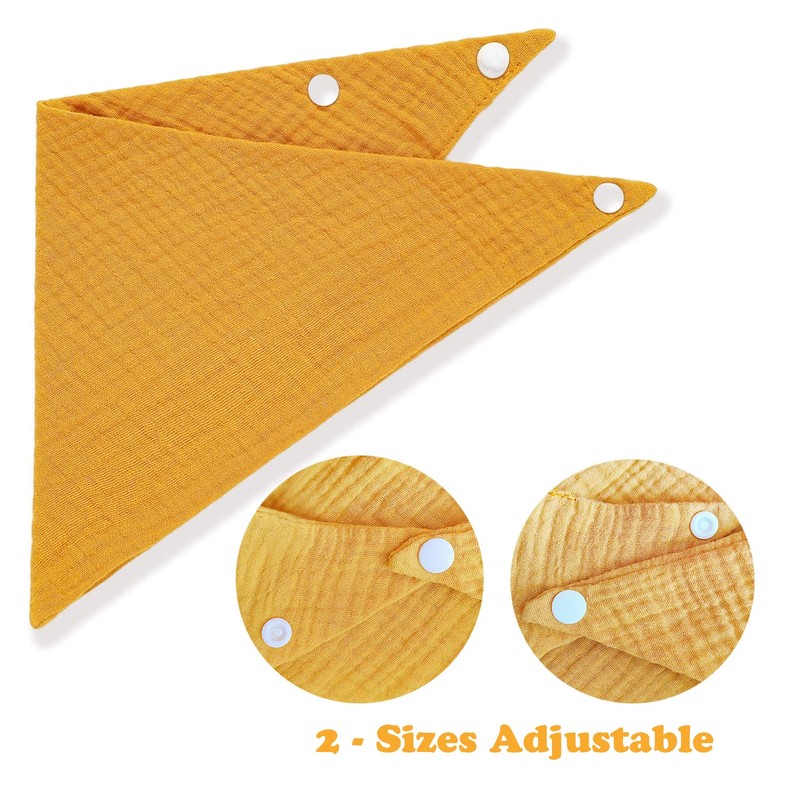 - Adjustable and High-quality Push Buttons --- triangular cloth baby with 2 high-quality push buttons. You can adapt the size of the triangle according to the size of the baby neck. Very suitable for babies from 0 to 12 months.