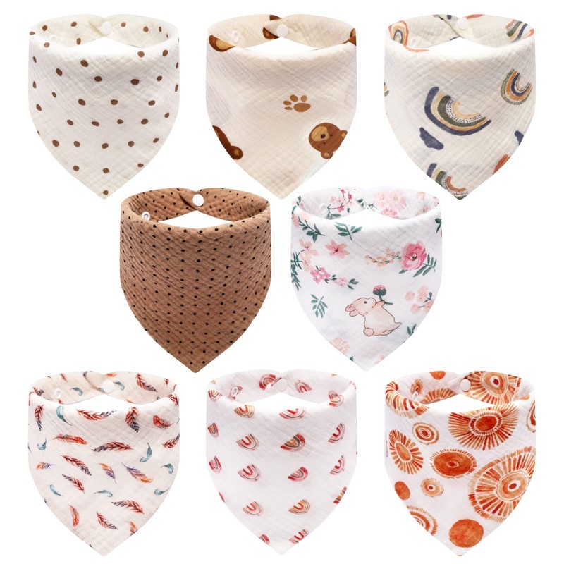 - 1. Comfortable and very absorbent: baby triangular scarf is very absorbent impermeable, the clothes stay dry, keep your baby dry for a long time to help your baby avoid rash and reflux.