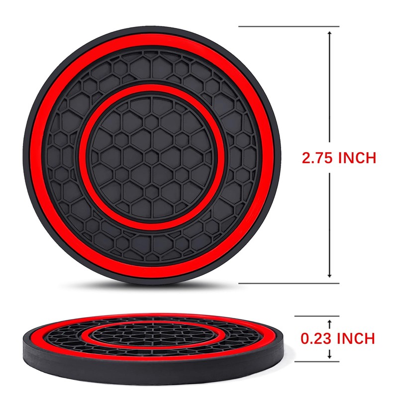 Auprite Car Cup Coasters, 4PCS 2.75 Inch Universal Auto Cup Holder Insert Coaster Anti Dust Mats Suitable for Most Car Interior Accessories(Red)