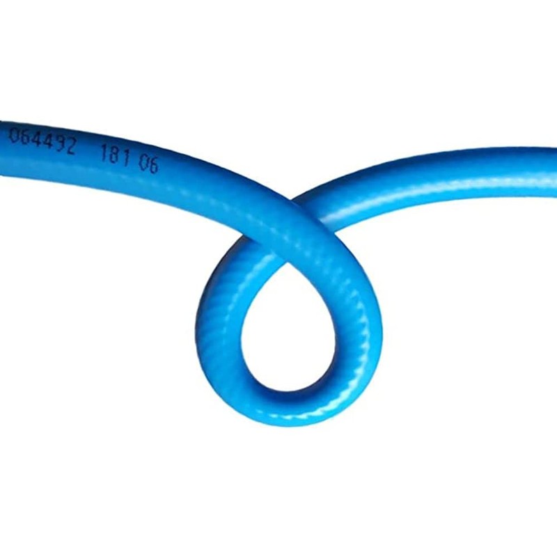 The blue quality hose is a highly flexible fabric-reinforced PVC hose with shock- and kick-resistant surface for a long service life of the hose, can withstand up to 16 bar operating pressure.
