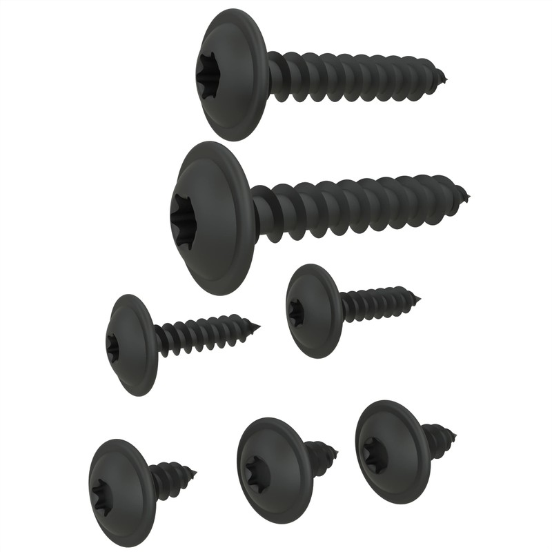 Auprotec Tapping Screws, Flat Head, with Disc, Torx, Black, Galvanised, DIN 7049