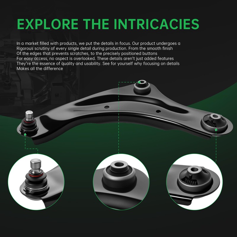 • 【About Control Arm】 - Control arms allow wheels to move up and down while preventing forward and rearward movement. They are typically equipped with bushings on the frame side of the vehicle and a ball joint on the wheel side of the vehicle that allow flex and controlled movement according to road conditions and steering input from the driver.