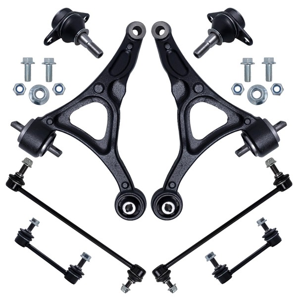 AUQDD 8Pcs Front End Suspension Kit Fit For 2003-2008 2009-2014 Vo-lvo XC90, 2 Lower Control Arm w Ball Joint 4 Sway Bar Link (# K640447 K640446 K80501 K500153 K80425)