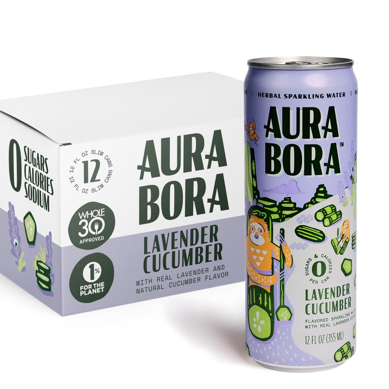 Aura Bora, Lavender Cucumber Herbal Sparkling Water, 12 oz Can (Pack of 12), 0 Calories, 0 Sugar, 0 Sodium, Non-GMO